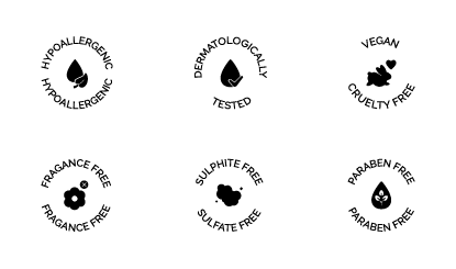 - Hipoalergénico - Dermatológicamente testeado - Libre de fragancias - Vegan & Cruelty free - Libre de sulfitos - Libre de sulfatos - Libre de parabenos