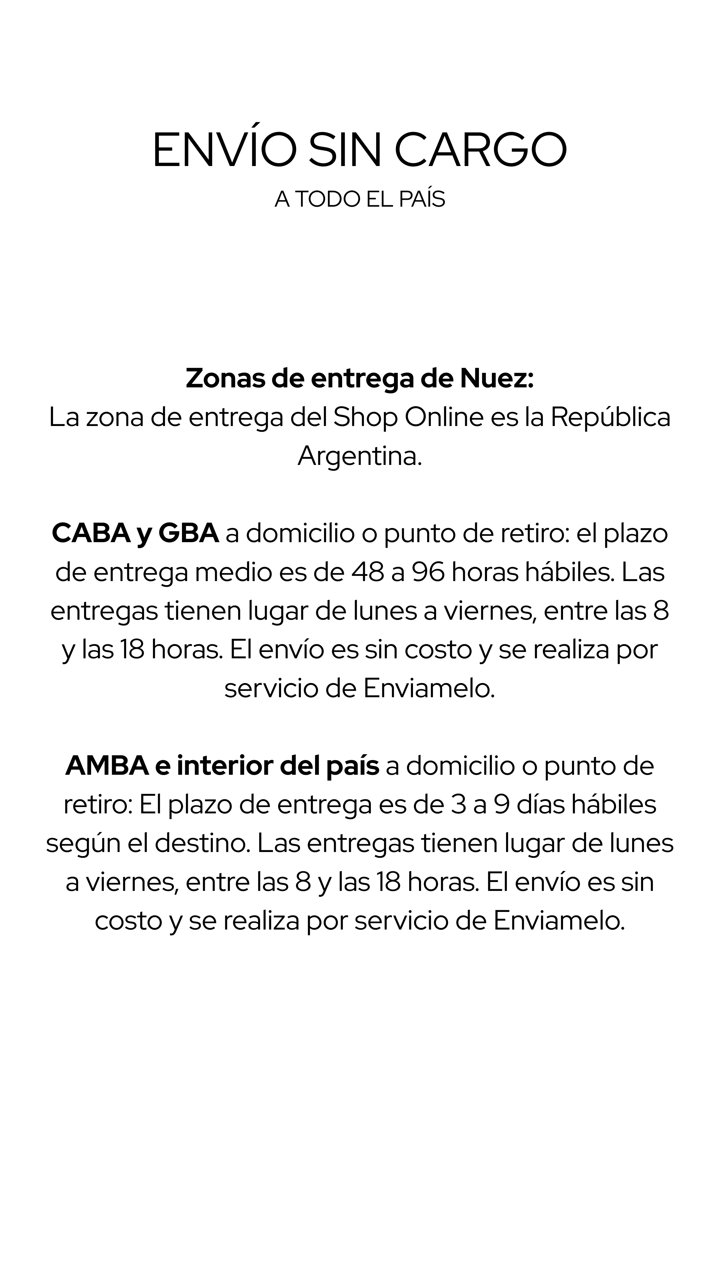 Envío sin cargo a todo el país a partir de $80.000